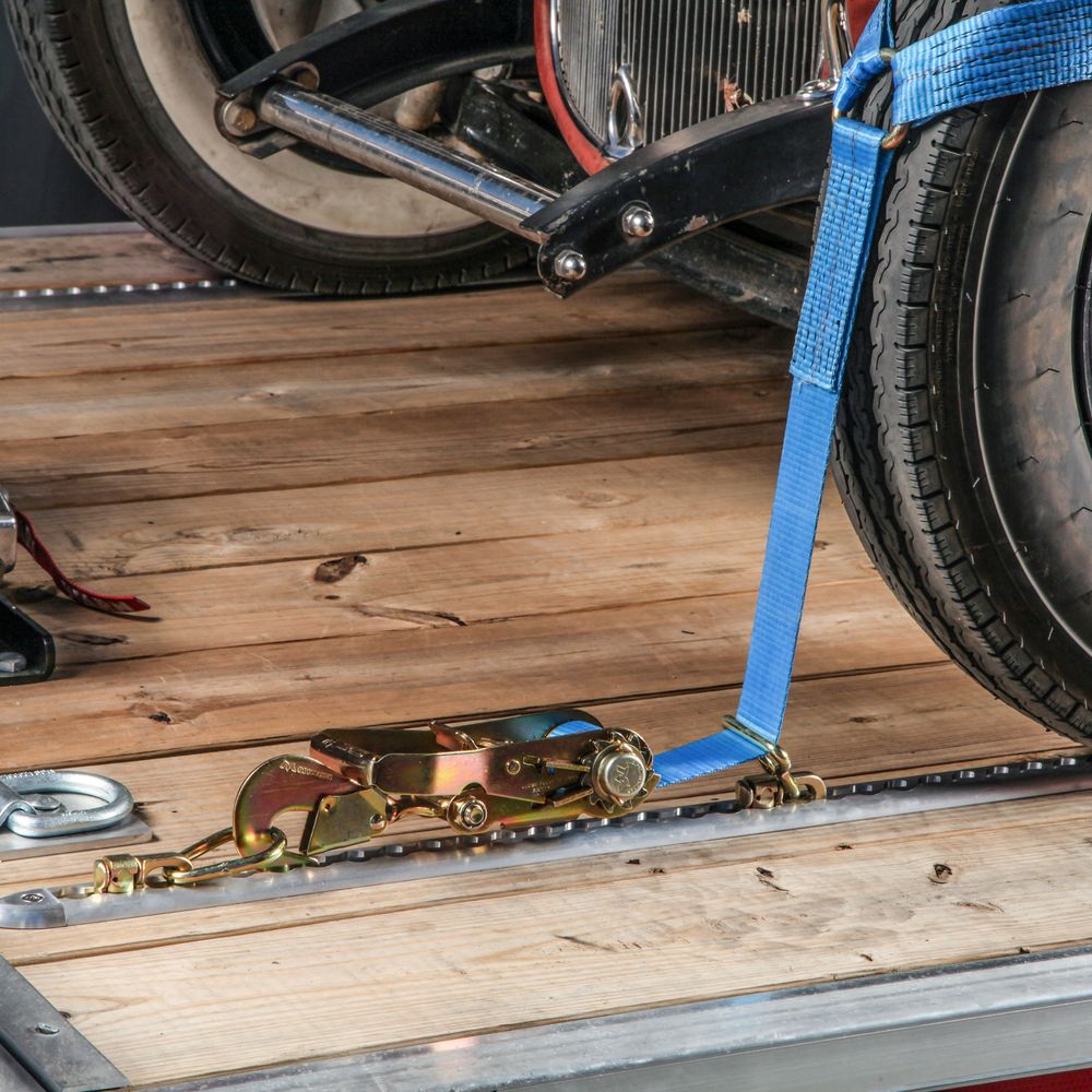 As with our other VersaTie Double-Stud Fittings, the new Idler fitting is rated to 5,000 lb. breaking strength. It pulls the strap down to an inch off the deck of the trailer as the strap runs out from under your fender, wing or splitter.