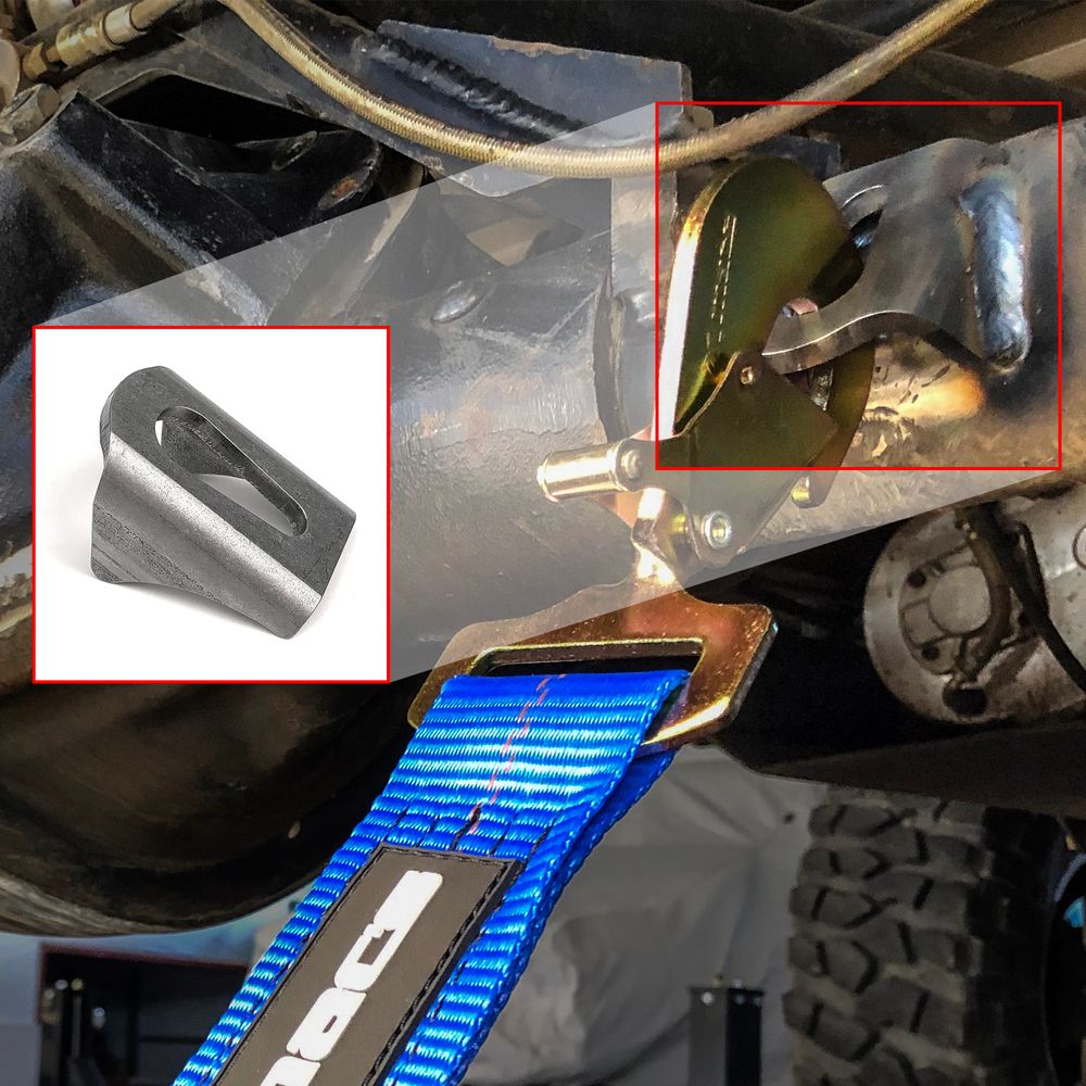 The Weld-On Axle Housing Bracket removes the need for an axle strap, thus creating an abrasion-free tie-down situation. Instead of routing an axle strap over potentially sharp areas, simply clip a ratchet strap to the bracket and run it out to your tie-down point. In addition, by eliminating the need for an axle strap, you also eliminate possible contact with critical vehicle components such as brake lines, wires, and hoses that may be in the way when tying down around the axle. This is also an excellent solution for off-road vehicles that have modified axles or axle trusses, which can be bulky or have rough edges. Mount this pair of brackets prior to adding your choice of finish and you'll have a beautiful, permanent tie-down point.