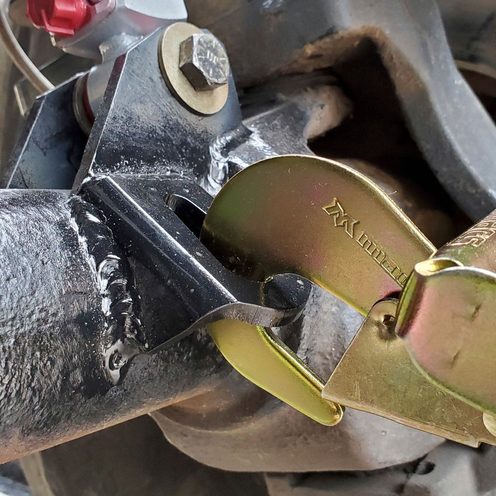 This pair of permanent anchor points weld directly to the axle. Each Mac's Weld-On Axle Housing Bracket is made from 1/4" steel tube which is cut on a tube laser then tumbled for a smooth finish. Designed to be low-lying and to perfectly accept our Twisted Snap Hook, they create the perfect permanent tie-down point on nearly any vehicle.